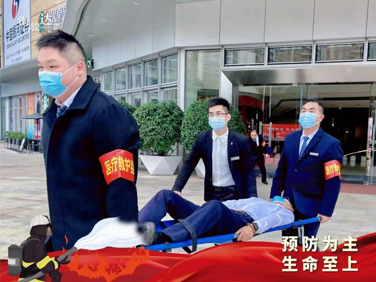 在消防逃生演練部分,部門的負(fù)責(zé)人及工作人員給各參與人員講解了逃生的技巧。警報(bào)響起后,在現(xiàn)場工作人員的指引下,各人員彎起腰用毛巾捂著鼻子,安全有序地從逃生出口逃生到空曠地方。
