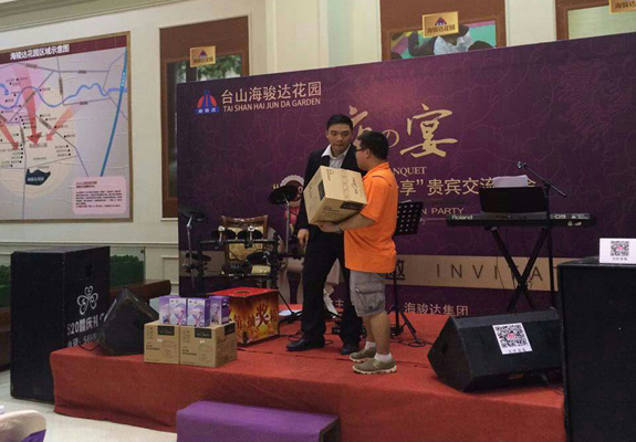 2014年11月,臺山海駿達花園舉辦了多場銀行專場自助晚宴。宴會吸引了眾多銀行VIP客戶到場,現(xiàn)場銷售人員對銀行VIP客戶熱情介紹項目信息,客戶紛紛對項目舉辦的晚宴活動表示滿意。